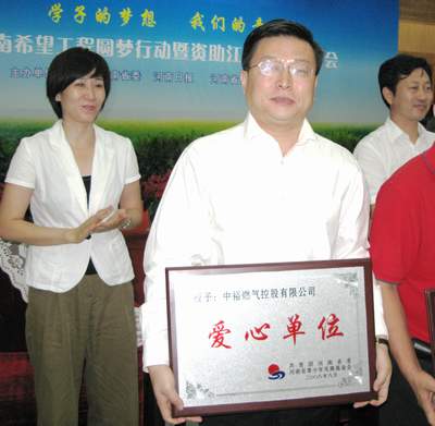中裕燃?xì)饪毓捎邢薰緢?zhí)行董事魯肇衡先生作為愛心捐贈(zèng)企業(yè)的唯一代表在會上發(fā)言。魯總在發(fā)言中說到,中裕燃?xì)庾鳛橐患颐駹I燃?xì)膺\(yùn)營商,一直熱心于慈善事業(yè),并把“常懷感恩之心,不忘回饋社會”作為自己的座右銘,時(shí)刻牢記在心。從2002年至今,已通過希望工程辦公室、河南省慈善總會、河南省紅十字會等機(jī)構(gòu)向各類弱勢群體捐贈(zèng)了價(jià)值近200萬元的款物,其中包括向5.12汶川大地震中受災(zāi)的學(xué)生捐助50萬元。魯總表示,中裕將以此次“圓夢行動(dòng)”為契機(jī),進(jìn)一步加大對貧困地區(qū)和貧困學(xué)生的幫扶支教力度。同時(shí)呼吁更多的企業(yè)和社會團(tuán)體參與到“圓夢行動(dòng)”中來,幫助更多的貧困學(xué)子夢想成真。