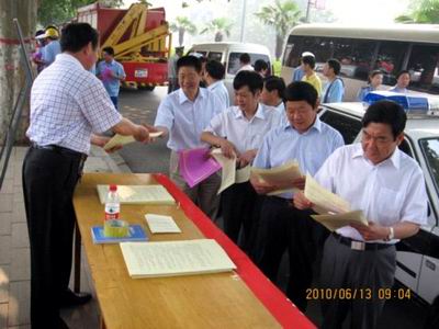 在漯河市人民政府組織的“安全生產(chǎn)月”宣傳周活動上,漯河市人民政府副市長曹存正先生、漯河市政協(xié)副主席劉運杰先生正在咨詢臺前閱讀安全用氣宣傳資料,就用氣安全宣傳工作進行指導。