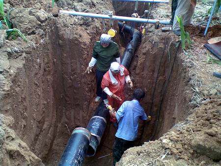 工地上,轟隆隆的挖掘機(jī)一刻不停地加緊作業(yè),龐大的壓路機(jī)穿梭來往,場外的施工人員忙著鋼管焊接、溝槽回填……各項(xiàng)工作如火如荼、緊張有序地進(jìn)行著。此時(shí)雖已避過高溫時(shí)段,但酷熱煩悶的高溫天氣還是讓人難以忍受,站在那里沒幾分鐘,我便開始渾身冒汗了。望向旁邊的施工人員,烈日的暴曬和電焊的灼熱早已使他們衣衫浸透、汗流浹背,而他們卻渾然不覺,臉上滿是認(rèn)真專注的神情。此時(shí)此刻,我才真正體會到他們嘴中所說的“晴天一身汗,雨天一身泥”的含義,這是他們工作狀態(tài)的真實(shí)寫照。看著他們正全情投入地忘我工作著,便不好意思上前打擾,開始獨(dú)自向前走去。