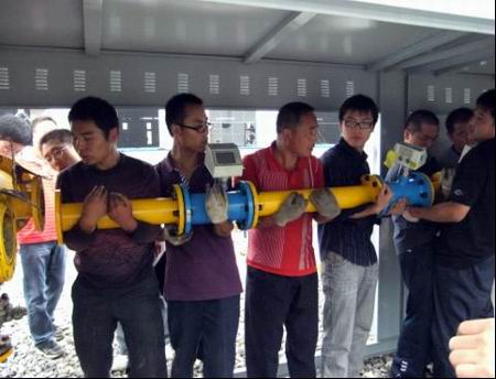 先是將以前的調(diào)壓柜拆掉,雖然安裝調(diào)壓柜的地方都是軟泥,但是大家已經(jīng)顧不得臟了,你扛我抬,僅用了十幾分鐘的時(shí)間就完成了全部拆卸。然后是搬運(yùn)到新地點(diǎn)重新安裝,按照?qǐng)D紙的設(shè)計(jì),大家在黃耀武經(jīng)理的指揮下,對(duì)調(diào)壓柜內(nèi)部的零件進(jìn)行了重新拼裝。擰螺絲的擰螺絲,遞工具的遞工具,每個(gè)人都在認(rèn)真地干著自己的工作。雖然頭上淋著小雨,鞋底沾滿(mǎn)泥濘,但是大家的工作熱情卻依舊高漲,為了用戶(hù)的用氣安全,擰緊每一個(gè)螺栓,放正每一個(gè)墊片……大家的臉上滿(mǎn)是水珠,已經(jīng)分不清是雨水還是汗水,為了盡快完成改裝,不耽誤用戶(hù)的生產(chǎn)用氣,工作一直持續(xù)到將近下午一點(diǎn)鐘,雖然大家都是又熱又累,但是看著自己的勞動(dòng)成果,大家都發(fā)自?xún)?nèi)心地笑了。