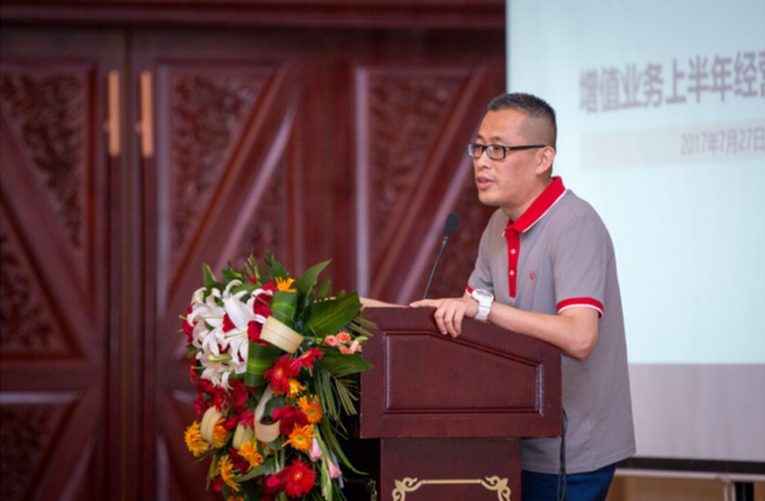 市場客服部副總經(jīng)理湯萌做《增值業(yè)務(wù)半年分析報告》