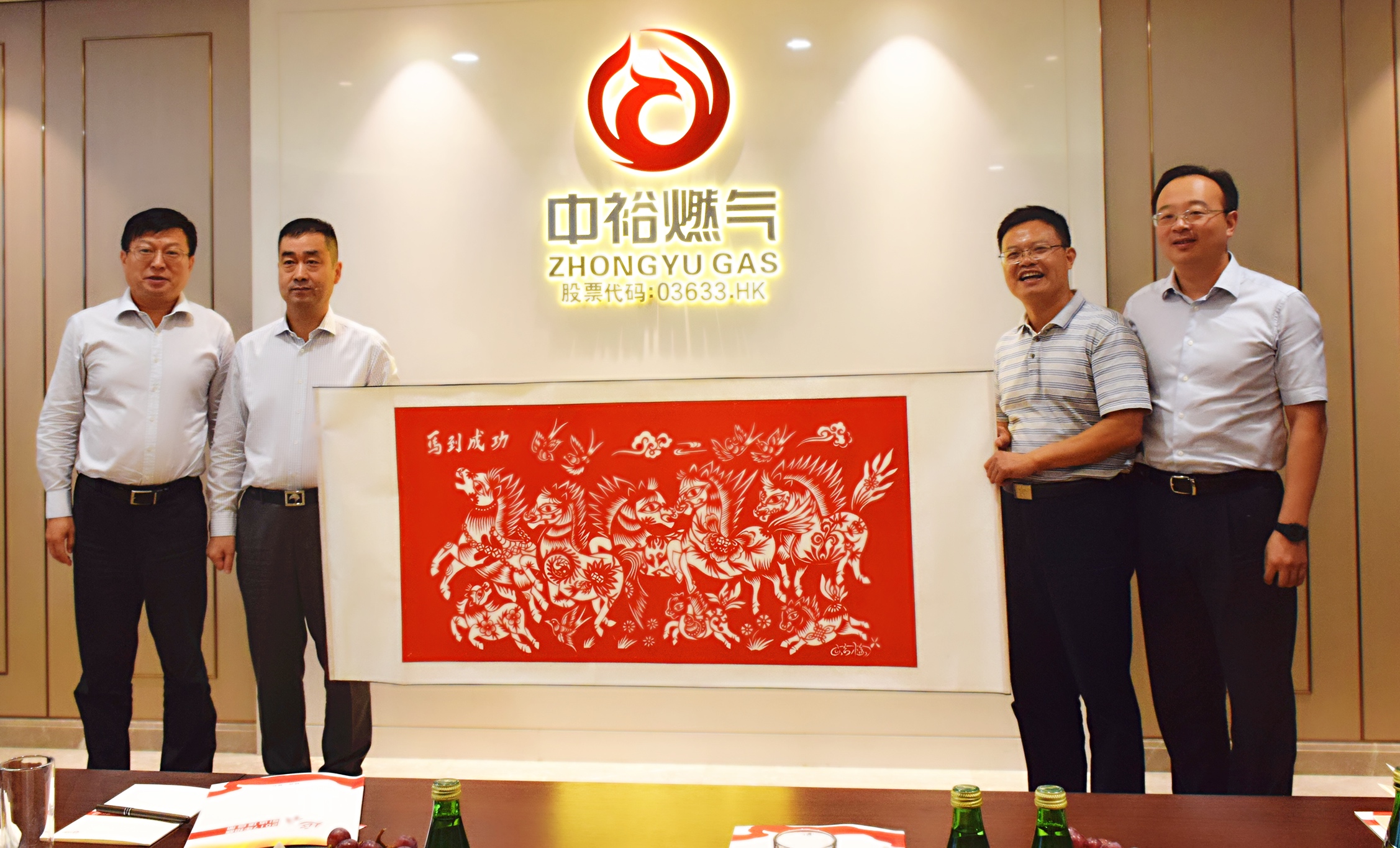 會談結(jié)束時(shí),楊市長一行特地向中裕燃?xì)馑蜕弦环}為《馬到成功》的陜西特產(chǎn)“剪紙畫”,寓意延安市政府與中裕燃?xì)獾暮献饕矊ⅠR到成功。雙方領(lǐng)導(dǎo)本次會面為中裕燃?xì)忾_疆拓土、發(fā)展新業(yè)務(wù)提供了良好契機(jī)。